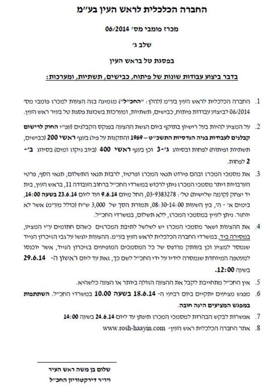 מכרז פומבי מס' 12/25 השכרת מקרקעין לצורך הצבת והפעלת מבנה במתחם הקבלנים בראש העין