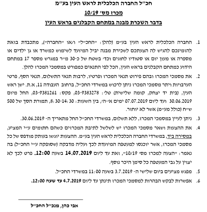 מכרז פומבי מס' 12/25 השכרת מקרקעין לצורך הצבת והפעלת מבנה במתחם הקבלנים בראש העין